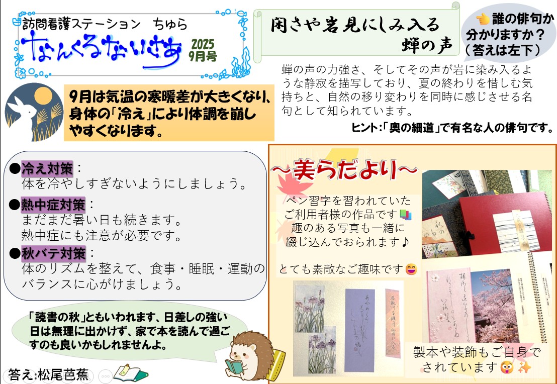 9月は気温の寒暖差が大きくなり、身体の冷えにより体調を崩しやすくなっています。